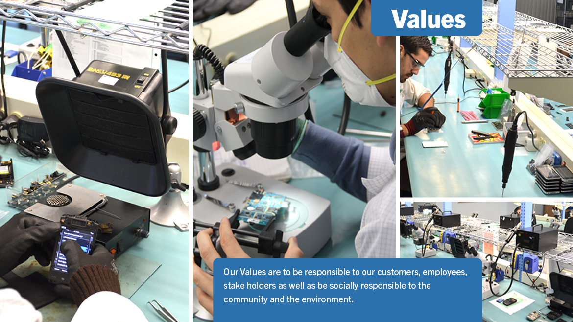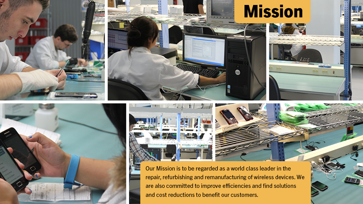 Our Mission is to be regarded as a world-class leader in the repair, refurbishing and remanufacturing of wireless devices. We are also committed to improve efficiencies and find solutions and cost reductions to benefit our customers.